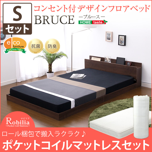 デザインフロアベッド【ブルース-BRUCE-(シングル)】(ロール梱包のポケットコイルスプリングマットレス付き)