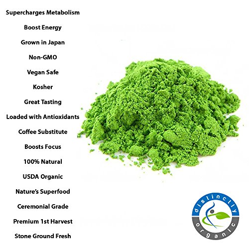 Distinctly Organic Matcha Green Tea - [USDA] Ceremonial Grade Powder - Natural Health Benefits - Free Recipe eBook