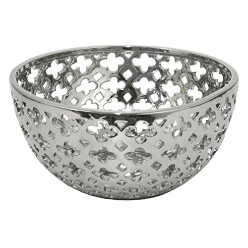 Three Hands 15830 Pierced Ceramic Bowl with Glossy Finish Silver, 5" x 10.5"
