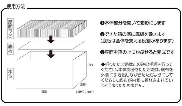 | イスと収納BOXが合体!!1つ2役でスペースを有効活用♪ |