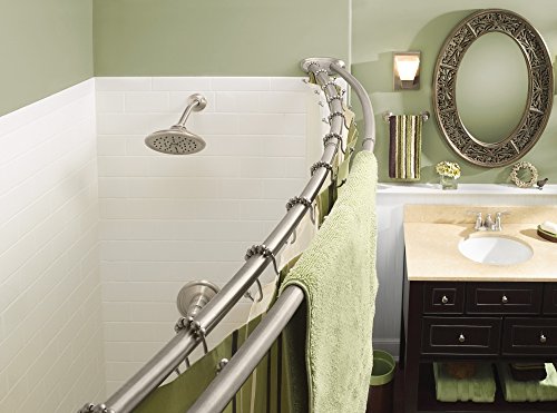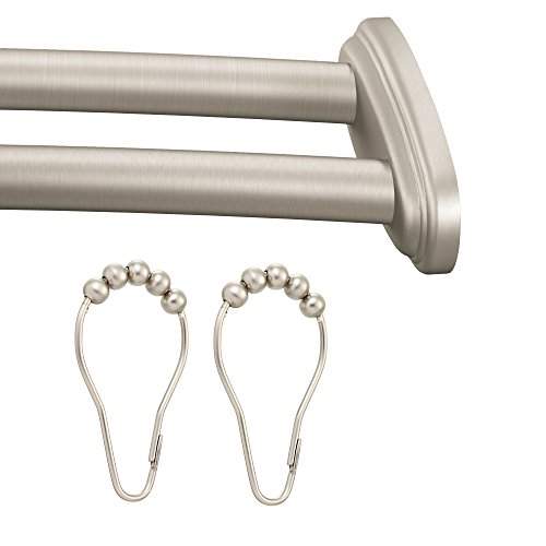 Moen DN2141-RR-BN Adjustable Double Curved Shower Rod with Shower Curtain Roller Rings, Brushed Nickel