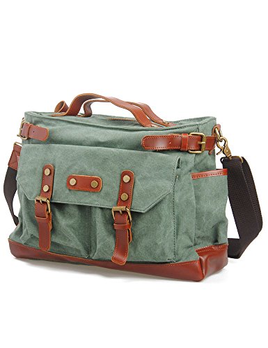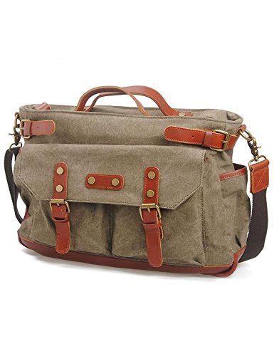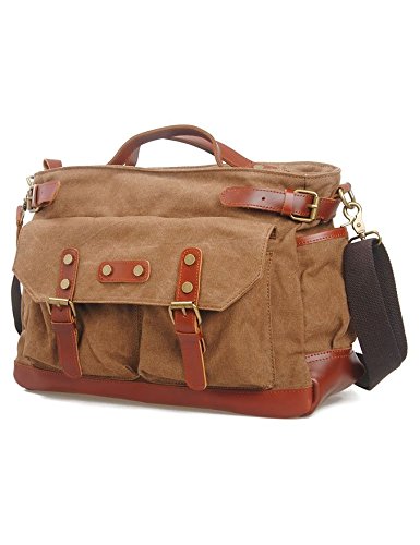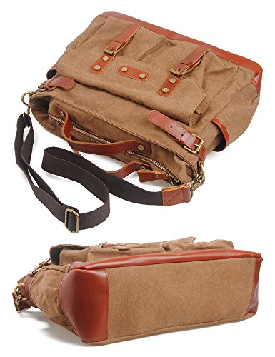 -. Brand : Leaper -. Feature : Size: 14.18*3.94*11.03 inch (L*W*H) Fit 11 inch laptop, like Macbook Air 11''. / Top Quality Canvas Bag with Genuine Cow Leather Trim.Flapover design with buckle flap and magnetic closures is great for quick-access items / Leather top handle; Thicken shoulder straps which is adjustable with a buckle, antique finish brass metal buckles; Adjustable shoulder strap for comfort / Includes 4 inside pocket and 3 outside pocket, which is convenient for put your items in order.Interior zip, wall and cell phone pockets and 2 large front pockets with strap & quick snap buckles / Large capacity. You can take Tablet PC(up to 11"), iPad, A4 magazine, portable textbooks, clothing, wallet, phone to this leather satchel bag -. ProductGroup : Apparel -. ProductTypeName : LAGE -. Title : Leaper Vintage Canvas Shoulder Bag/Messenger Bag/Travel Hiking Bag/Cross Body Handbag