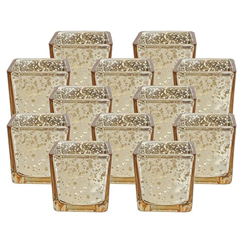 Just Artifacts Mercury Glass Square Votive Candle Holder 2.25"H (12pcs, Speckled Gold) - Mercury Glass Votive Tealight Candle Holders for Weddings, Parties and Home Décor