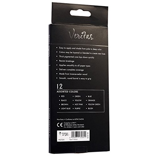 -. Binding : Office Product -. Brand : Christian Art Gifts -. Feature : Colors As Illustrated / Easy To Apply And Shade From Pale To Deep Color - Colors May Be Layered To Create New Hues / Thick (4mm) Soft Pigmented Core Lays Down Quickly And Smoothly For Complete Coverage / Made From Incense-Cedar Wood - Smooth Round Barrel Is Easy To Grip / Resist Breakage -. Label : Christian Art Gifts -. Manufacturer : Christian Art Gifts -. MPN : PCST251-252 -. PackageQuantity : 1 -. PartNumber : PCST251-252 -. ProductGroup : Art and Craft Supply -. ProductTypeName : ART_SUPPLIES -. Publisher : Christian Art Gifts -. Studio : Christian Art Gifts -. Title : Veritas Colors Premium Artist Colored Pencils