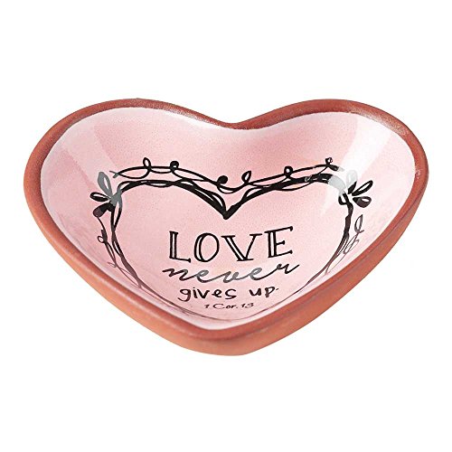 Love Never Gives Up Rose Pink 3 x 3 Terra Cotta Heart Shaped Decorative Bowl Tray