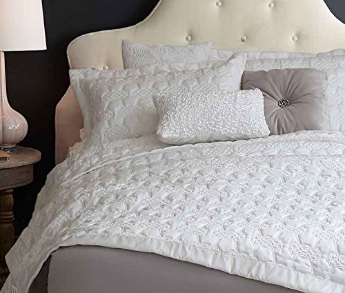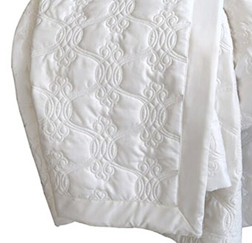 Adream Faux Silk Cotton Floral Pattern Quilted Bedspreads Wedding Home Textile Coverlet Quilt Solid Color Comforter, King (94"X102") (1PC, White)