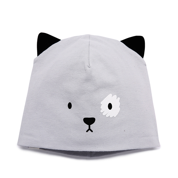 _그레이 컬러의 40'S싱글스판 소재에 강아지 캐릭터로 포인트를 주어 귀엽게 착용하기 좋은 비니입니다.