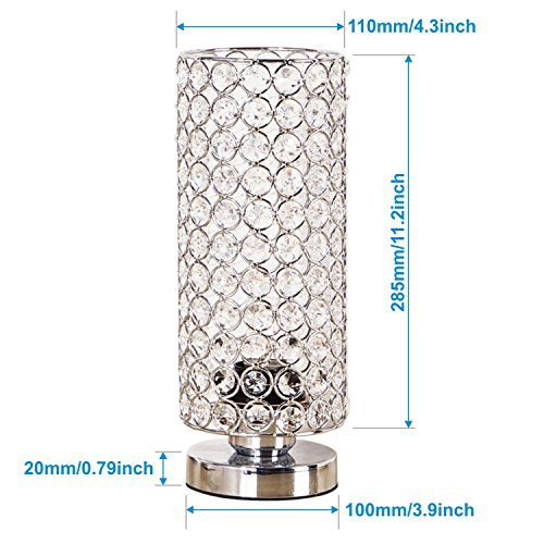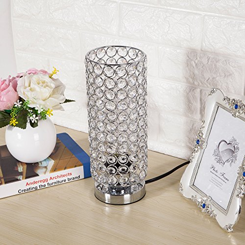 ZEEFO Crystal Table Lamp, Nightstand Decorative Room Desk Lamp, Night Light Lamp, Table Lamps for Bedroom, Living Room, Kitchen, Dining Room (Silver)