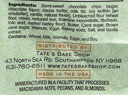 -. Feature : Tate's Bake Shop's signature thin, crisp cookies / Chocolate Chip Walnut Cookies / All Natural / 7oz Bags (total 21oz, 3 bags) / Approximately 12 cookies per bag