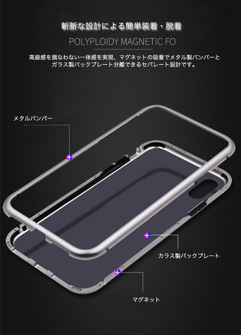★「対応機種」iPhone6s(アイフォン6s)、iPhone6s Plus(アイフォン6s プラス)、iPhone6(アイフォン6)、iPhone6 Plus(アイフォン6 プラス)★「カラー」ブラック(黒)、ホワイト(白)、レッド(赤)★「商品特徴」薄型 軽量設計でありながら、メタル製バンパーとガラス製バックプレートを配備した2ピース構造となっており、iPhone本体特有の演出を損なうことなく表現出来るケースです。高級感を損なわない一体感を実現、マグネットの吸着でメタル製バンパーとガラス製バックプレート分離できるセパレート設計です。ハードコート加工により、傷が付きにくくガラスをきれいな状態のまま長く保ちます。ケース内側四隅に設計されたエアクッションが万が一の落下時にも端末を保護します。カメラの開口部を高めに設計、レンズ面がテーブル面などに接触せずに傷防止になります。★「キーワード」アイホン6 アイホン6プラス ケース アイホン6s アイホン6sプラス ケース クリア カバー マグネット吸着 メタルバンバー 強化ガラス 透明 薄型 軽量 耐衝撃 2重保護 保護性能 ワイヤレス充電対応 おしゃれ 簡単装着 脱着 オシャレ 衝撃吸収 レンズ カメラ 傷防止 落下保護 高級感