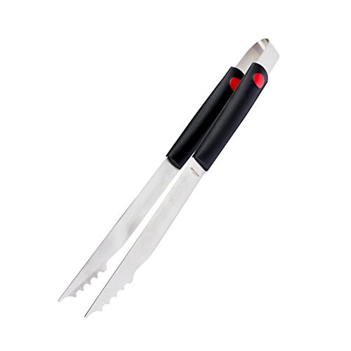 - The long, rounded handles with cool anti-slip rubber coating for a secure grip and reduce the risk of burning yourself on a hot grill.