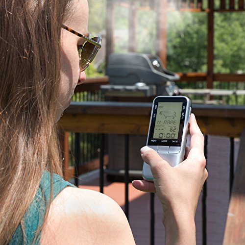 - BONUS FEATURES: Large LCD screen and great backlight for increased visibility. Ability to manually set the target temperature to your own personal taste. Built-in kitchen timer with count-up or count-down ability. Alarm that notifies you when your meat reaches it's set temperature.