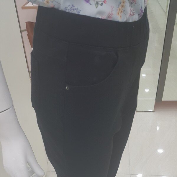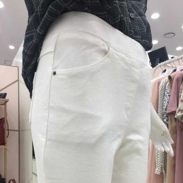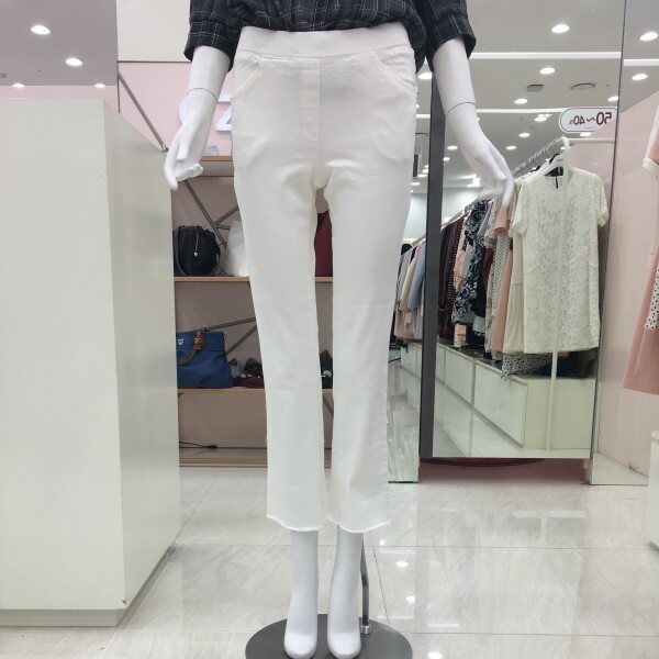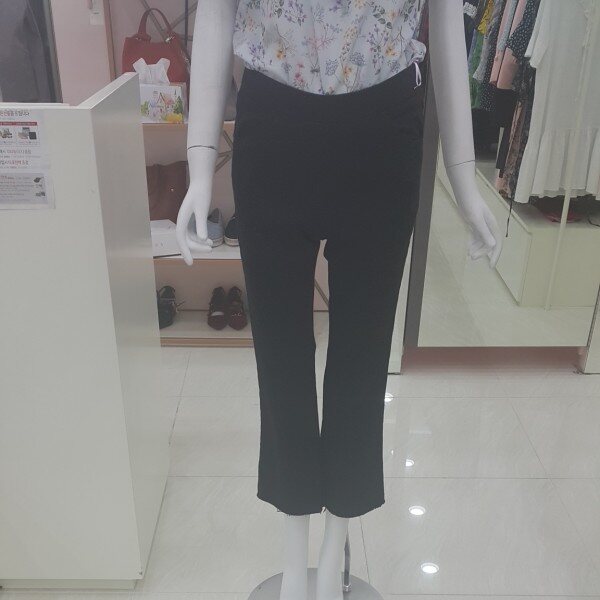데님소재에 부드럽고 편한 감촉의 허리밴딩 팬츠에요~살짝 부츠컷에 밑단수술장식이 있어요~