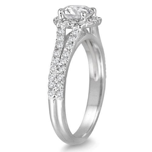 -. Title : AGS Certified 1 1/4 Carat TW Diamond Split Shank Halo Engagement Ring in 14K White Gold (J-K Color, I2-I3 Clarity)