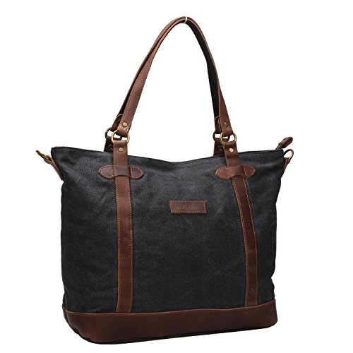 - The Color Black is Actually Closer To Dark Grey.✔Material- Durable Heavy And Pliable Canvas&Nice Leather Trim,Reinforced Double Stitching , Solid Hard Brass Hardware.