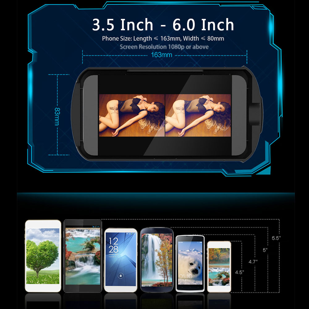 Suitable for almost all kinds of smart phones (Android / IOS, etc) that screen between 3.5~6.0 inches.