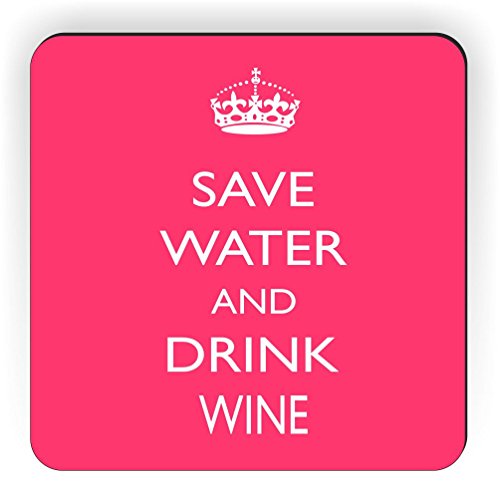 Rikki Knight Save Water and Drink Wine Tropical Pink Design Square Fridge Magnet