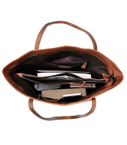 ZLYC Women Vintage Dip Dye Leather Tote Bag Handbag Large Zippered Shoulder Bag