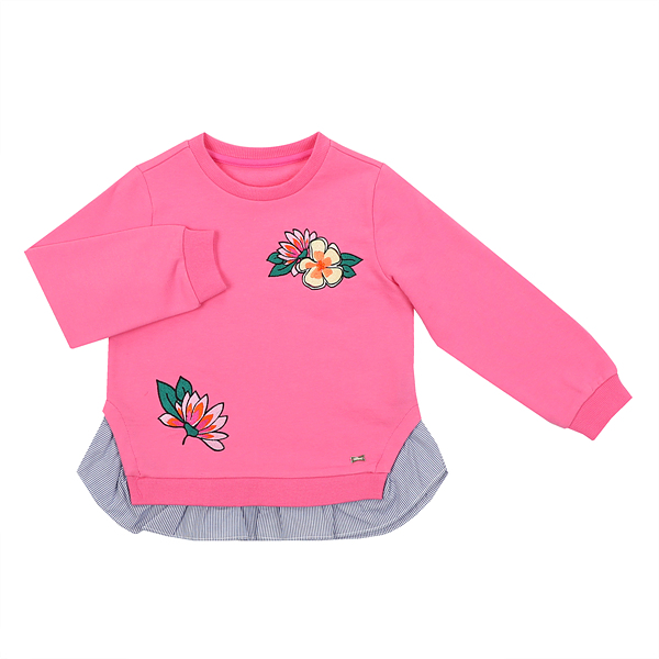 상세설명-상큼하고 러블리한 핑크컬러에 플라워패턴의 자수장식이 포인트가 되는 티셔츠입니다.