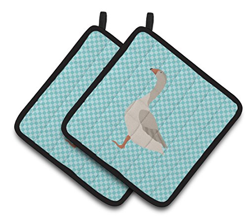 Caroline's Treasures BB8068PTHD Steinbacher Goose Blue Check Decorated Pot Holder, 7.5" x 7.5", Multicolor