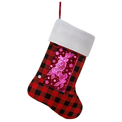 YEW Stuff: Christmas Stockings for Men, Women, Kids, Pets; LED Light up Xmas Stocking - Large Lighted Holiday Stocking for Boys and Girls; Decorative Family Stocking with Lights (Reindeer)