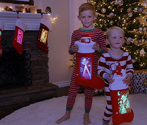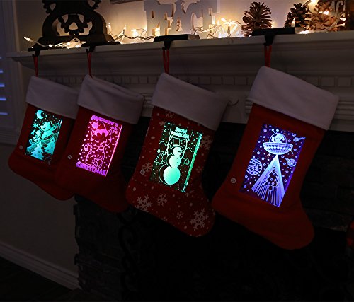 - UNIQUE! Light up the holiday season with attention grabbing LEDs that light up the fun design on the front of this Holiday Stocking. Choose between 6 different designs: Alien/UFO, Santa, Reindeer, Snowman, Winter Fun, and Meowy Christmas. Seven color settings allow you to show off your favorite color, or you can select color-changing mode.
