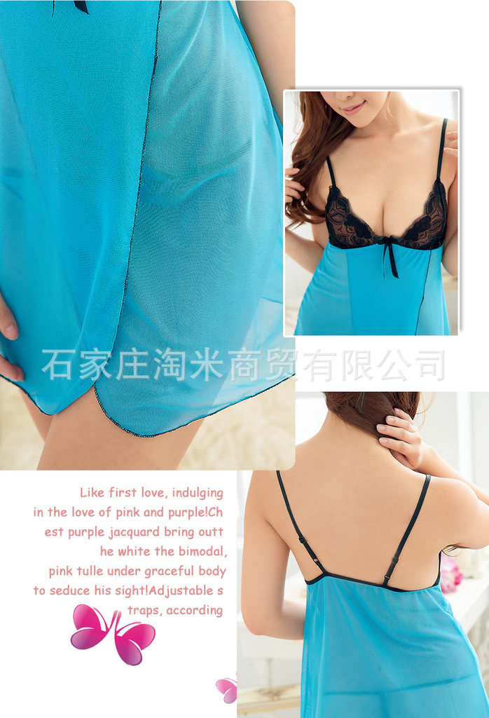 光泽感的迷情蓝色搭配性感大方的黑色蕾丝,展现女人的柔媚风情…