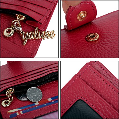 -. Binding : Apparel -. Brand : YALUXE -. Department : womens -. Feature : Soft Grain Leather,luxury looking and soft touch. / Shiny gold-color hardware,heavy duty zipper and detailed contrast stitching brightens up the wallet. / 6 card slots,including a photo slot.a full-length compartments for cash/bills and a zippered pocket for change/coins . / Functional yet small enough to put in your coat pocket. / Dimensions: 4.21"L x 7.08"W x 0.98"H(when opened); 4.21"L x 3.74"W x 0.98"H(when folded). -. ProductGroup : Apparel -. ProductTypeName : ACCESSORY -. Size : Small -. Title : YALUXE Women's Compact Small Bifold Leather Wallet with ID Window Coin Pocket