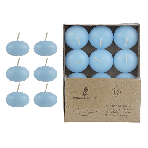 Mega Candles - Unscented 1.5" Floating Disc Candles - Light Blue, Set of 24