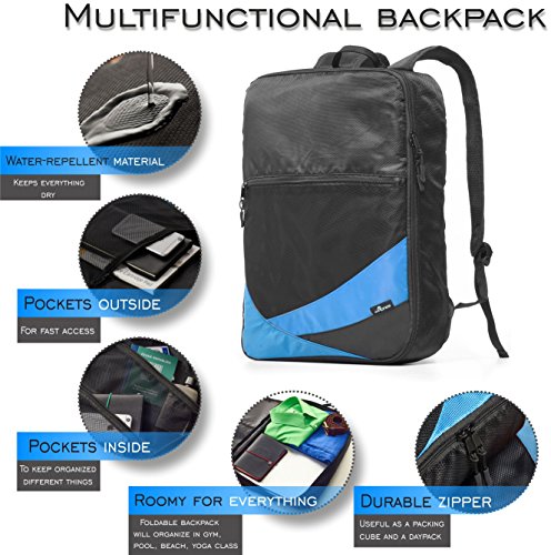 ENJOY COMFORT using any part of the set. For instance, 2 in 1 ultralight packing cube, back pack and weekender bag is suitable both for men and women. This black backpack is foldable and comfortable to take it for any travel. Being roomy enough to take anything you need, it stays really lightweight and you will not notice any extra weight.