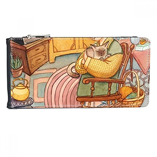 (DIYthinker)/Accessories/Wallets, Money Key Organizers/DIRECT FROM USA/Miaoji Painting Watercolor Cat Wool Granny Multi-Card Faux Leather Rectangle Wallet Card Purse Gift