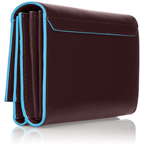 Die Edelmarke PIQUADRO fertigt hochwertige Geldbörsen, die mit schickem Design und viel Liebe zum Detail so kreiert sind, dass sie ideal an den Alltag des Endverbrauchers angepasst sind. Der blaue Rand an den exakt geschnittenen Rändern verrät hier unverkennbar als Wiedererkennungseffekt die luxuriöse, italienische Marke mit Tradition. Im Innern bietet dieses Damen Portemonnaie eine durchdachte Ausstattung, die Karten separat von Bargeld aufbewahrt. Drei Geldscheinfächer sorgen dabei sogar für sortierte Geldscheine.