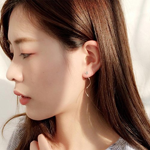 Leiothrix Hypoallergenic Geometrical Star Ear Line Dangle Earrings Silver Jewelry for Women and Girls