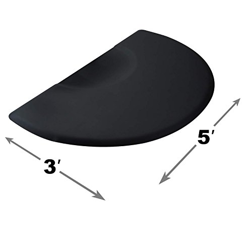 Saloniture 3 ft. x 5 ft. Salon & Barber Shop Chair Anti-Fatigue Floor Mat - Black Semi Circle - 7/8 in. Thick