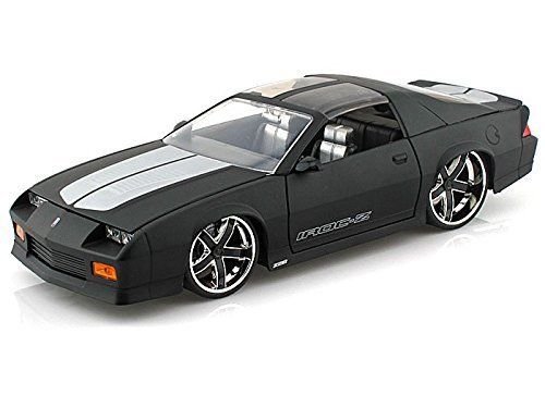 -. Binding : Toy -. Brand : Jada -. EAN : 0736983505736 -. Feature : Jada Display Big Time Muscle Diecast Car (Without Retail Box) / By Jada Toys / Scale: 1:24 DieCast Metal With Some Plastic Parts / Rubber Tires & Detailed Interior -. IsAdultProduct : 0 -. Label : Jada Toys -. Manufacturer : Jada Toys -. ProductGroup : Toy -. ProductTypeName : TOYS_AND_GAMES -. Publisher : Jada Toys -. Studio : Jada Toys -. Title : New 1:24 DISPLAY BIG TIME MUSCLE - MATTE BLACK 1985 CHEVROLET CAMARO Diecast Model Car By Jada Toys -. UPC : 736983505736