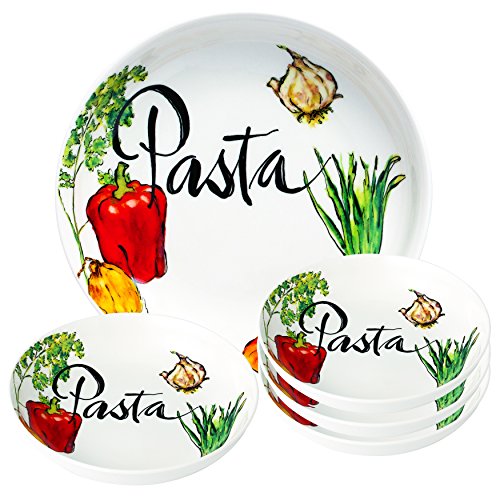 Lorren Home Trends PS7 Pasta Set 5 Piece Porcelain Vegetable Design, Multicolor