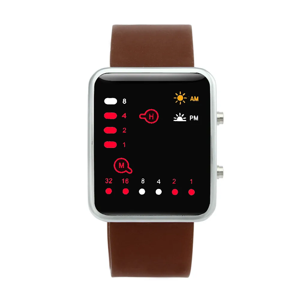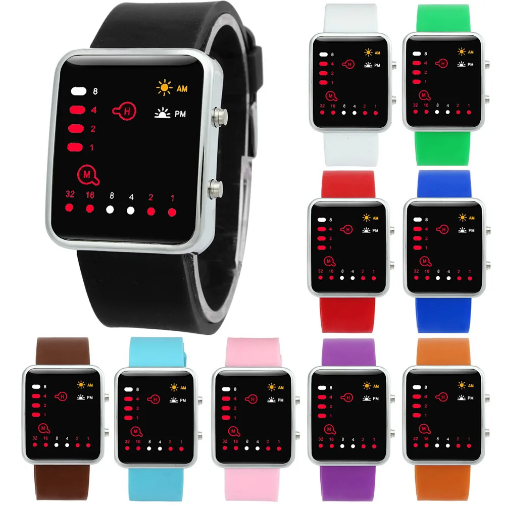 Model Number:Women Mens Digital Red LED Sports Watch Binary Wristwatch Silicone