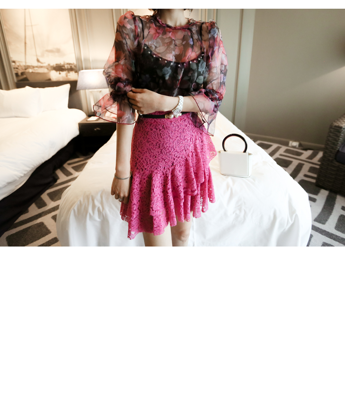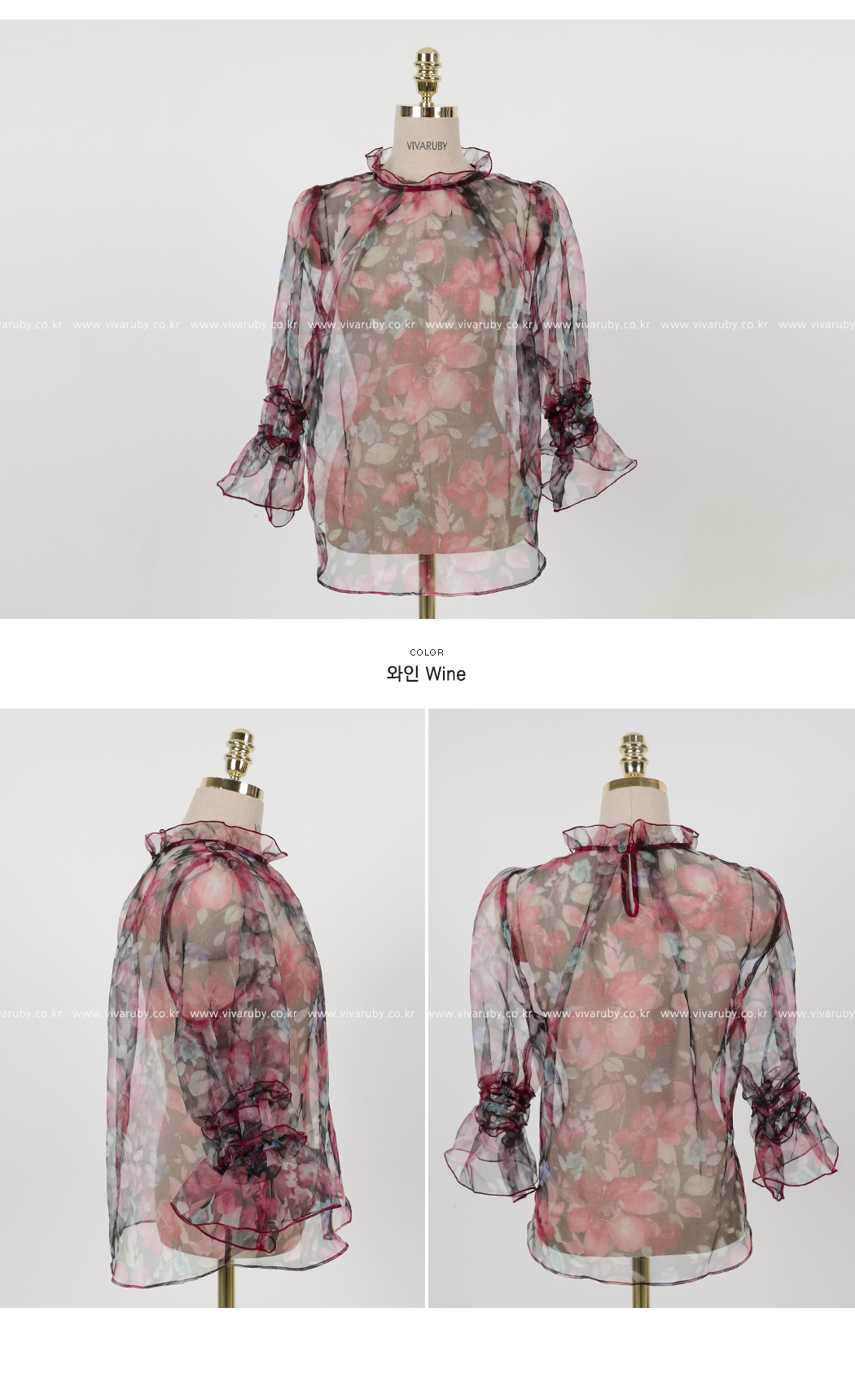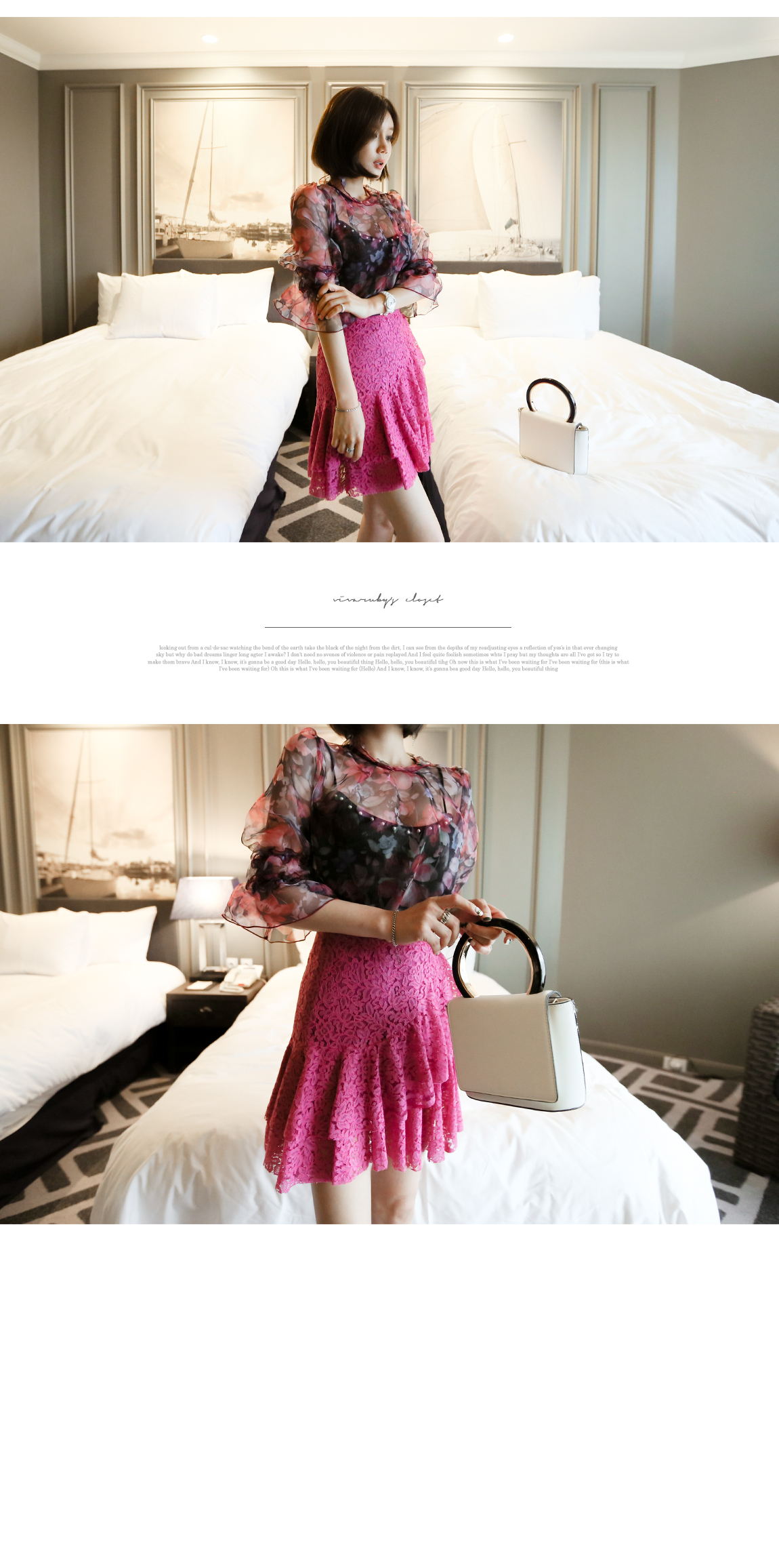 全体シースルーが演出されるセクシーなムードの網目ブラウスです
