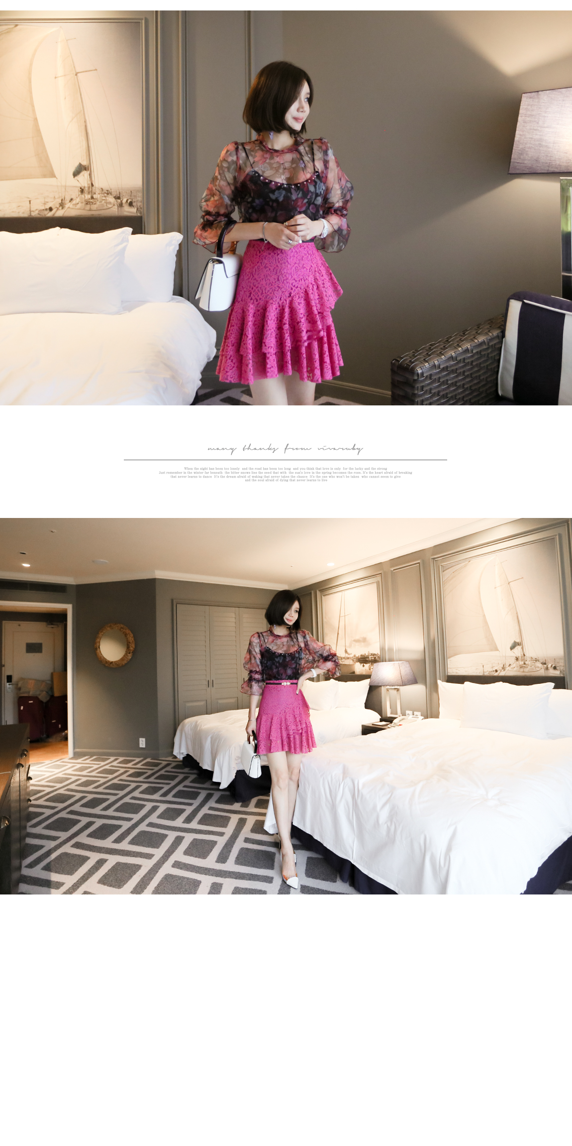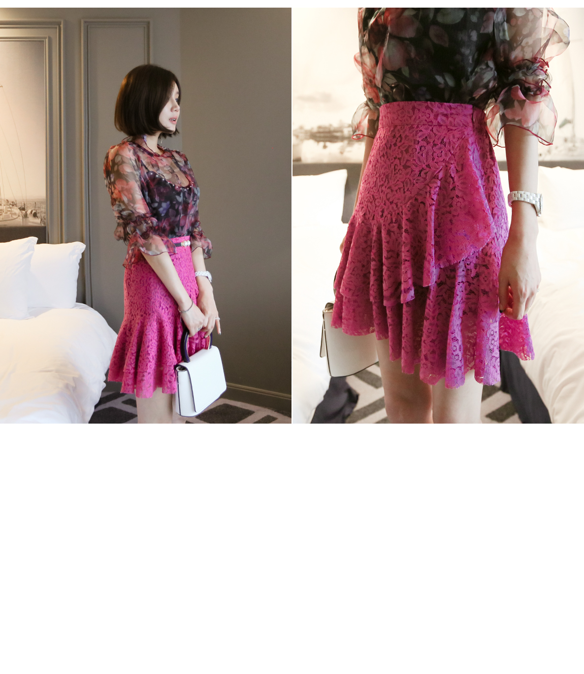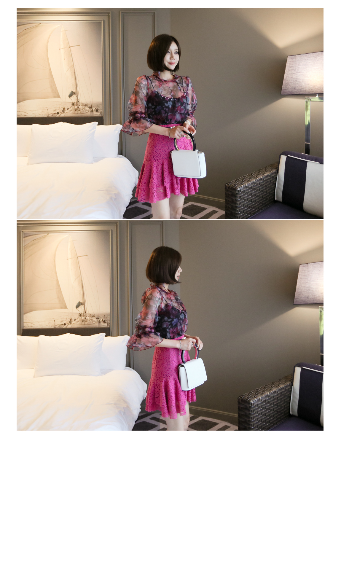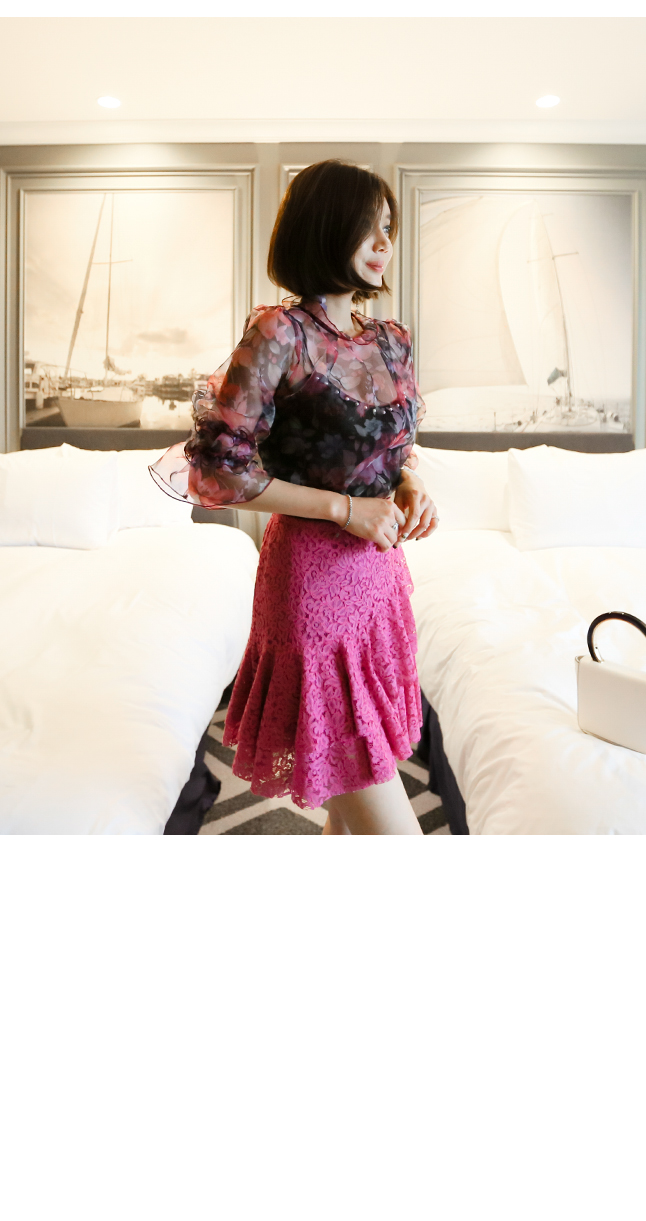 全体シースルーが演出されるセクシーなムードの網目ブラウスです