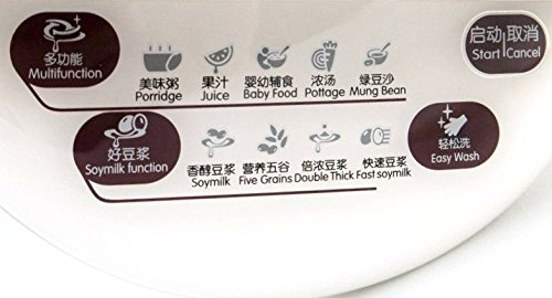 Functions: Porridge, Juice, Baby food, Pottage, Mung Bean, Soymilk, Five Grains, Double Thick, Fast soymilk, Easy Wash