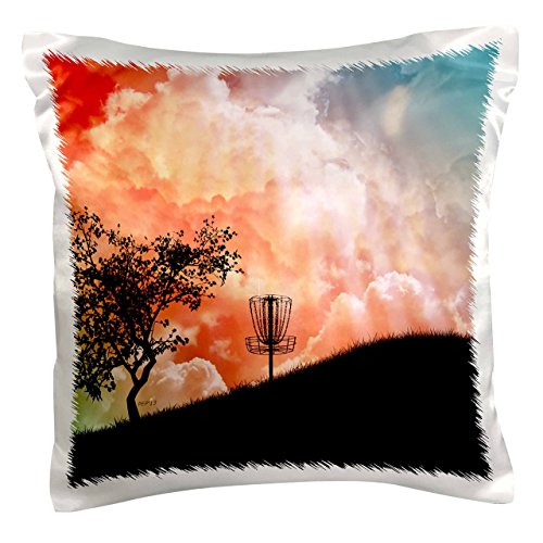3dRose pc_173454_1 Basket on A Hill Silhouette Of A Frisbee Disc Golf Basket with Chains Pillow Case, 16" x 16"
