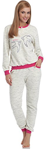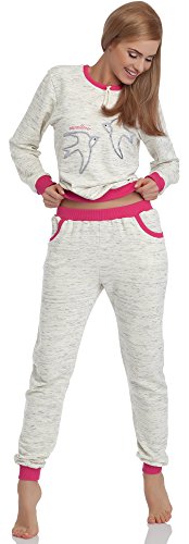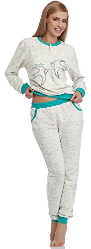 -. Binding : Textilien -. Brand : Merry Style -. Department : Damen -. Feature : Damen Pyjama; Lange Ärmel; Lange Hose; Warm und bequem / Oberteil mit originellem Aufdruck und bestickter Aufschrift; Mit Schnürchen im Kragen / Ärmel und Hosenbein mit Strickbündchen; Hose mit Taschen / Aus 100 % hochwertiger, atmungsaktiver und angenehmer Baumwolle; Das Material verfärbt und verformt sich nicht während der Wäsche / Hergestellt in der EU -. ProductGroup : Apparel -. ProductTypeName : SLEEPWEAR -. Title : Merry Style Warme Damen Winter Pyjama DR-5002