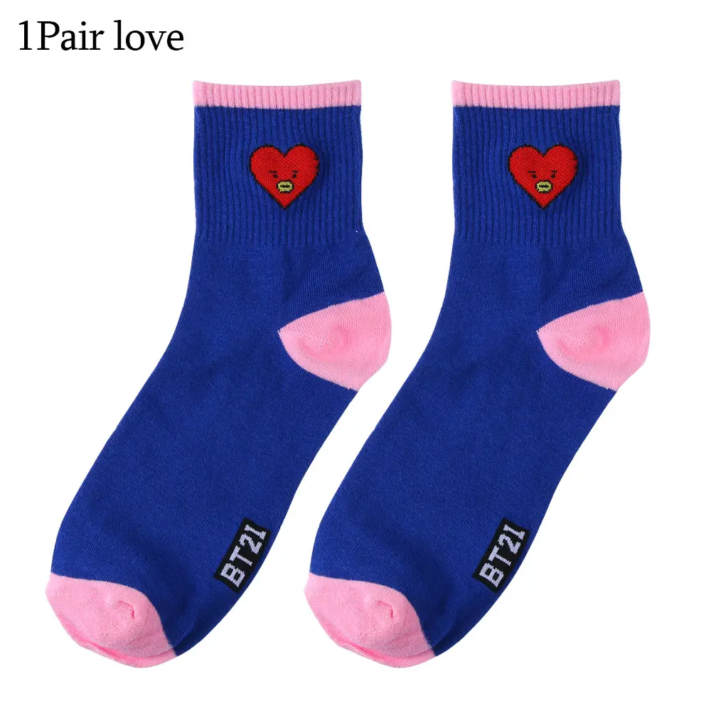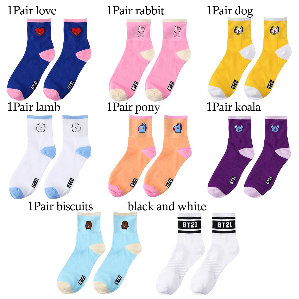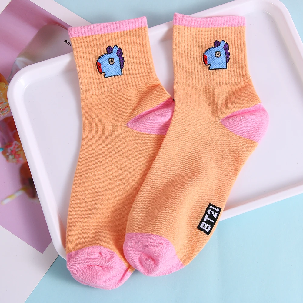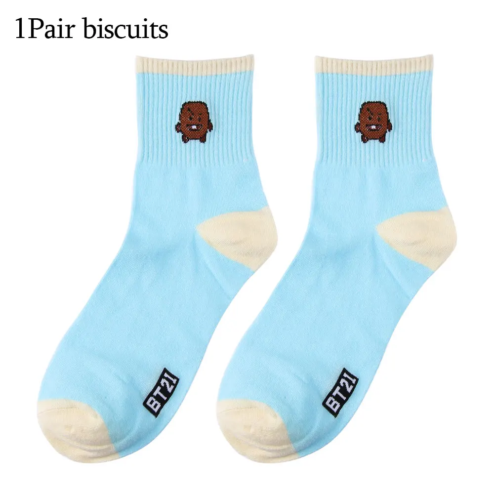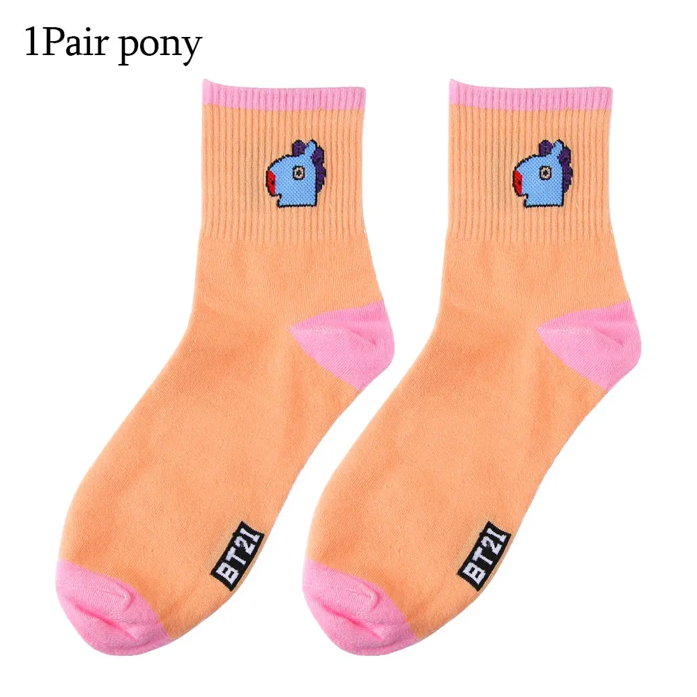 Package included: 1 Pair or 8 Pairs Color mixing BT21 long socks