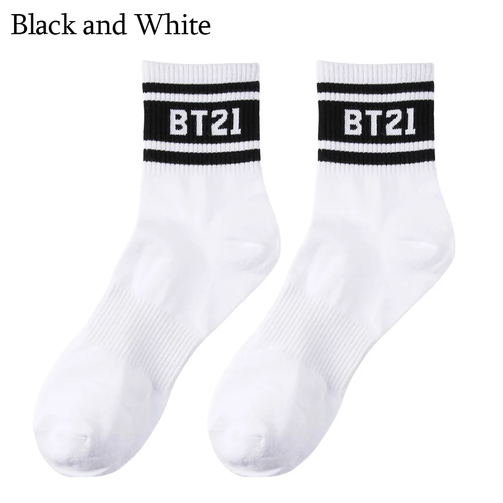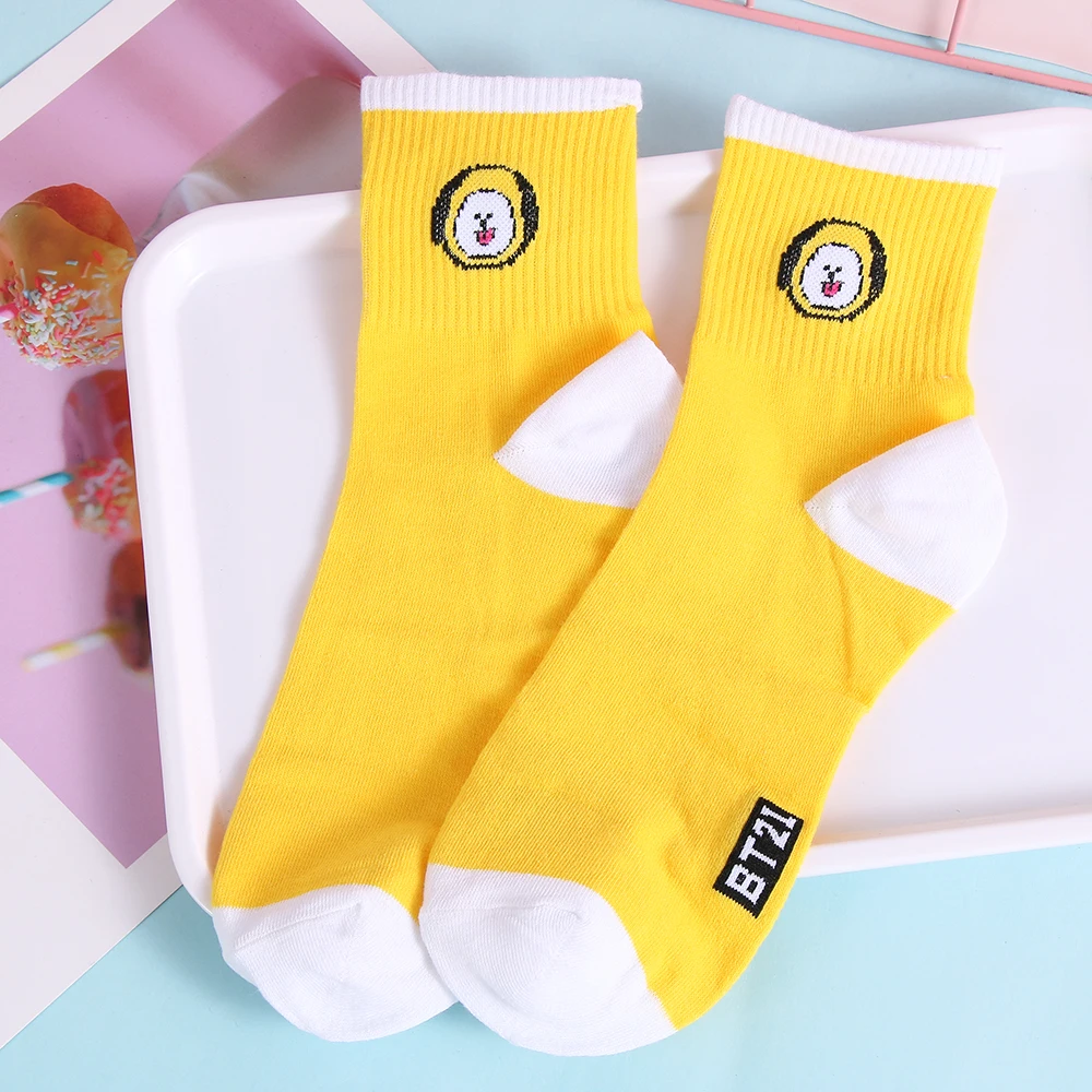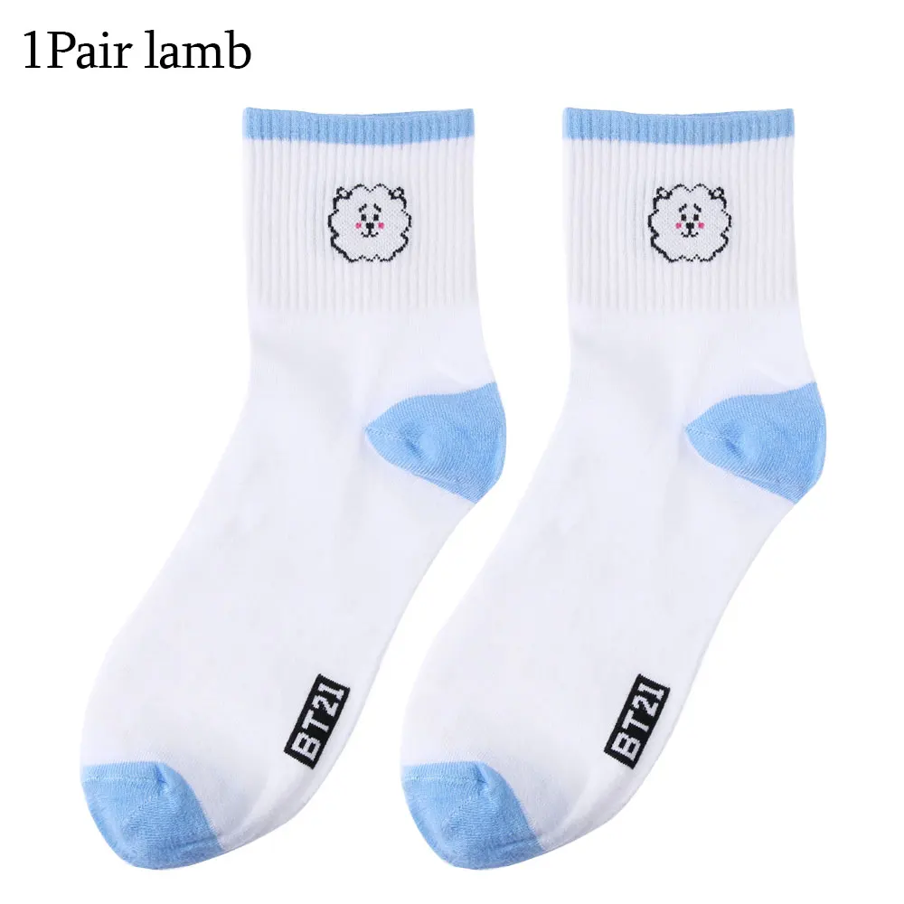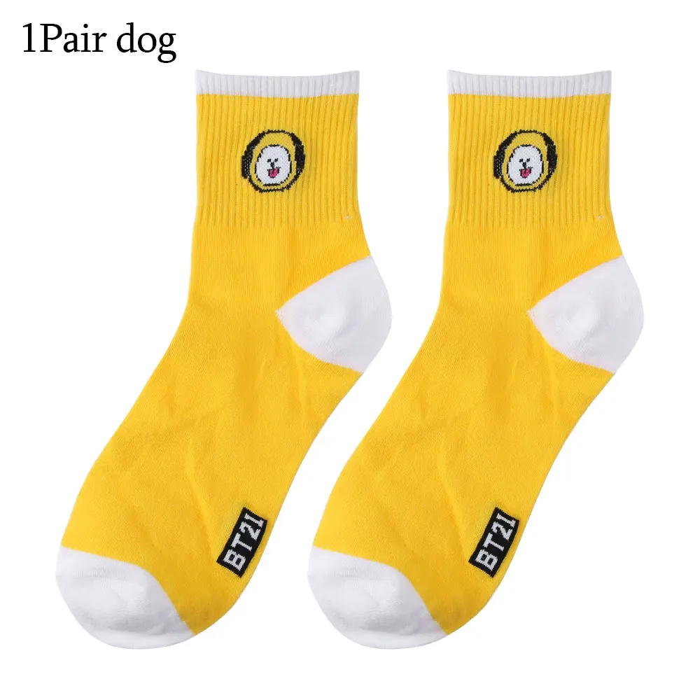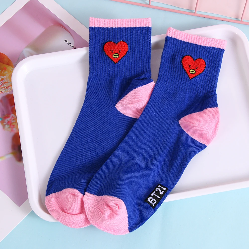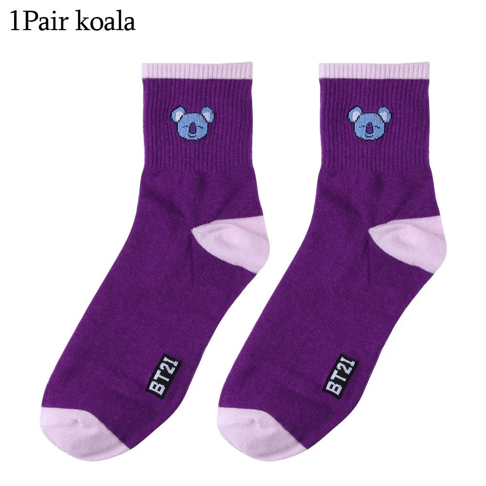 Package included: 1 Pair or 8 Pairs Color mixing BT21 long socks