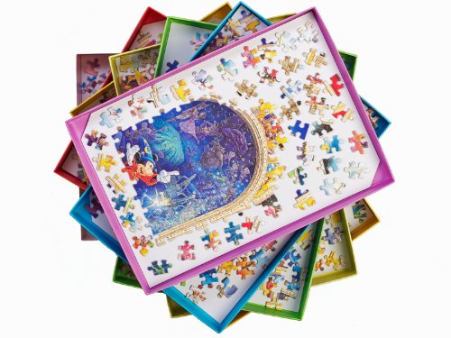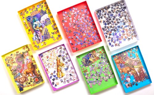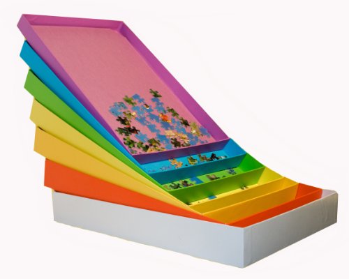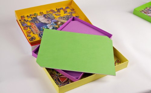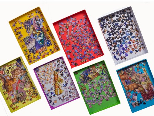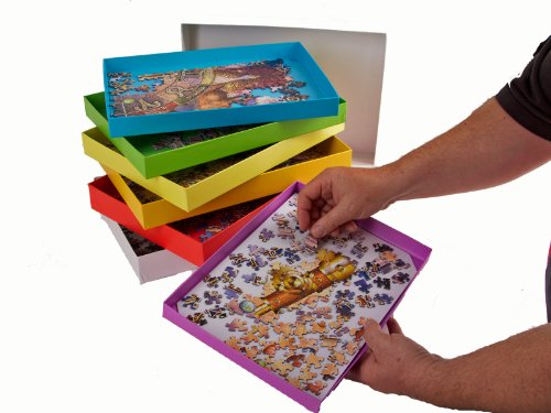 When you finish puzzling for the day the boxes all nest inside each other (in the manner of Russian Dolls) with the loose pieces sandwiched between each box. The pieces are all kept the right way up and grouped together exactly as you like. When the lid is put on it is impossible for any jigsaw piece to escape - you will never again have a puzzle with 999 pieces!
