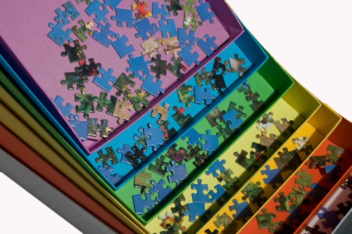 Many puzzle enthusiasts like to sort the unassembled pieces by colour or by the shape of the pieces and Jigsafe provides the ideal way to do this. Each box comes complete with its own bottom insert that makes it easy to transfer pieces from one box to another.