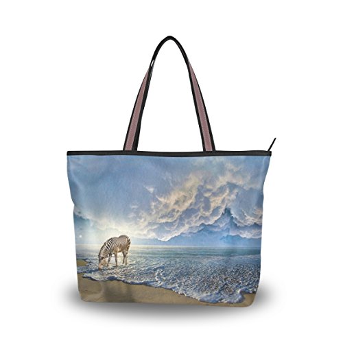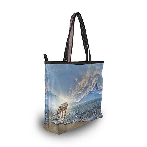 -. Title : JSTEL Women Large Tote Top Handle Shoulder Bags Zebra On The Beach Patern Ladies Handbag