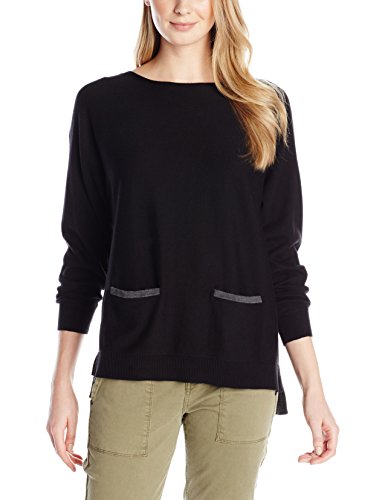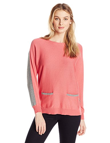 Long sleeve. Boat neck. Color block. Front pockets. Pull on.