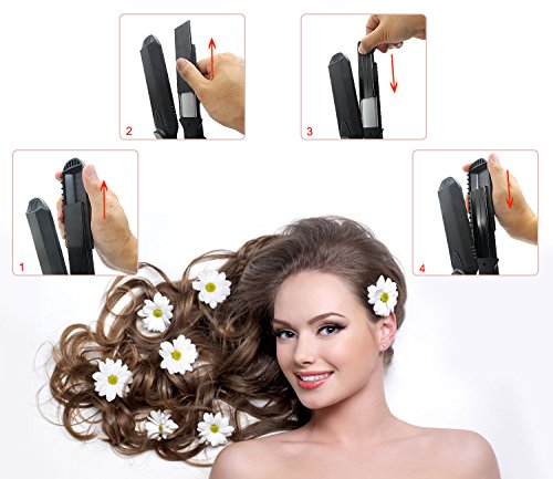 ♥ INTERCHANGEABLE CERAMICS PLATE — The flat iron set has four different interchangeable ceramics wave plates, you just need to pull out the top of the Lid easily and can replace the Plates freely. Let you create more changing style for your hair.