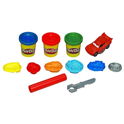 Set includes Lightning McQueen roller, 6 double-sided character stampers, roller, plastic knife, play mat and 3 two-ounce cans of Play-Doh modeling compound
